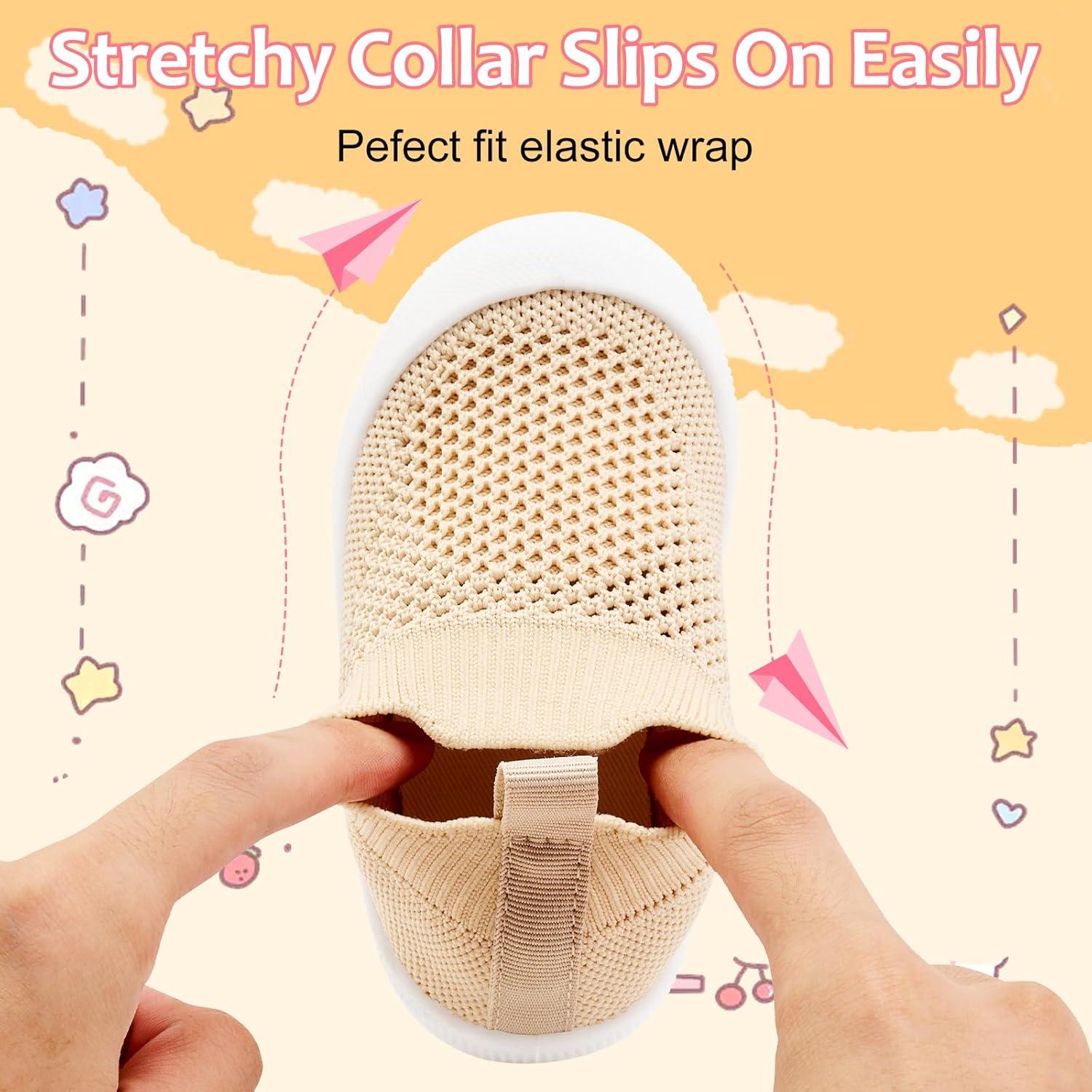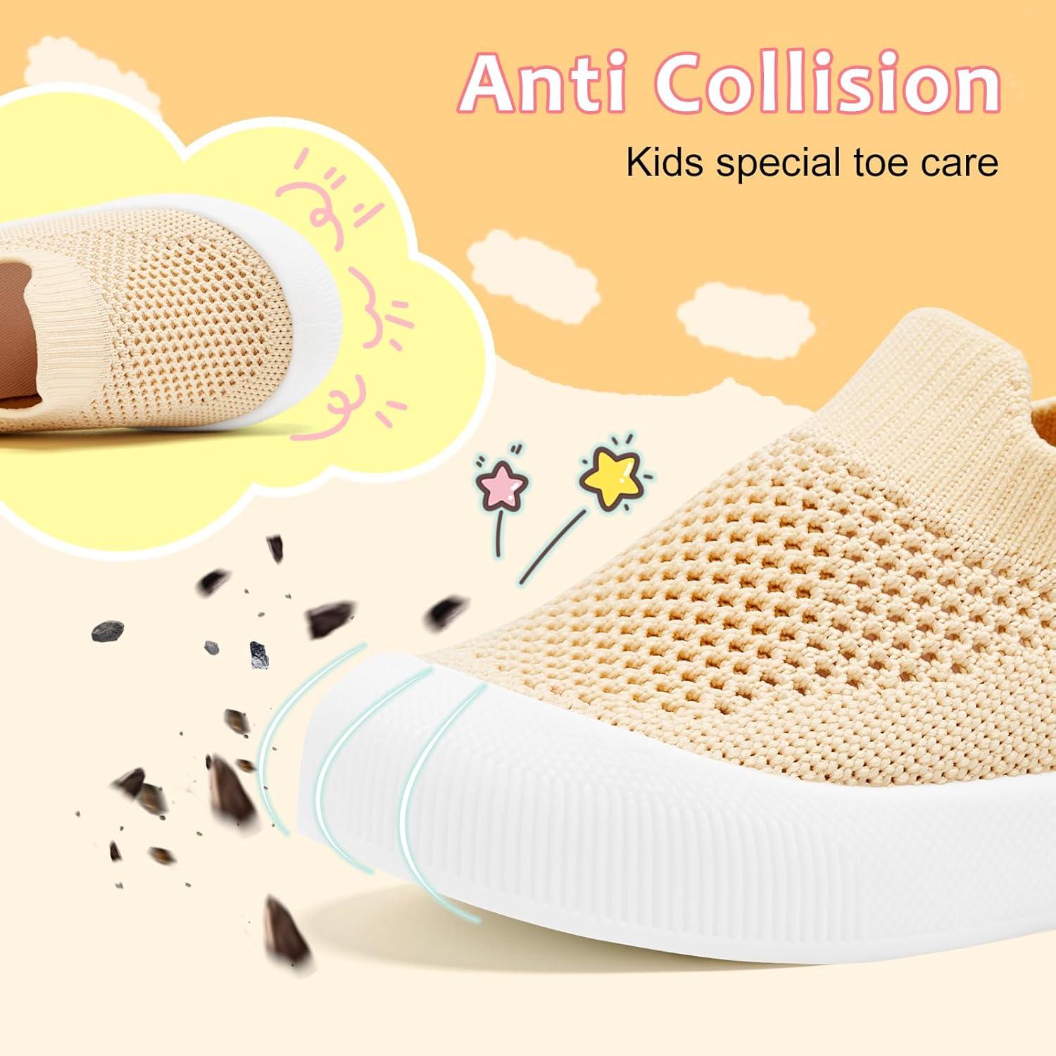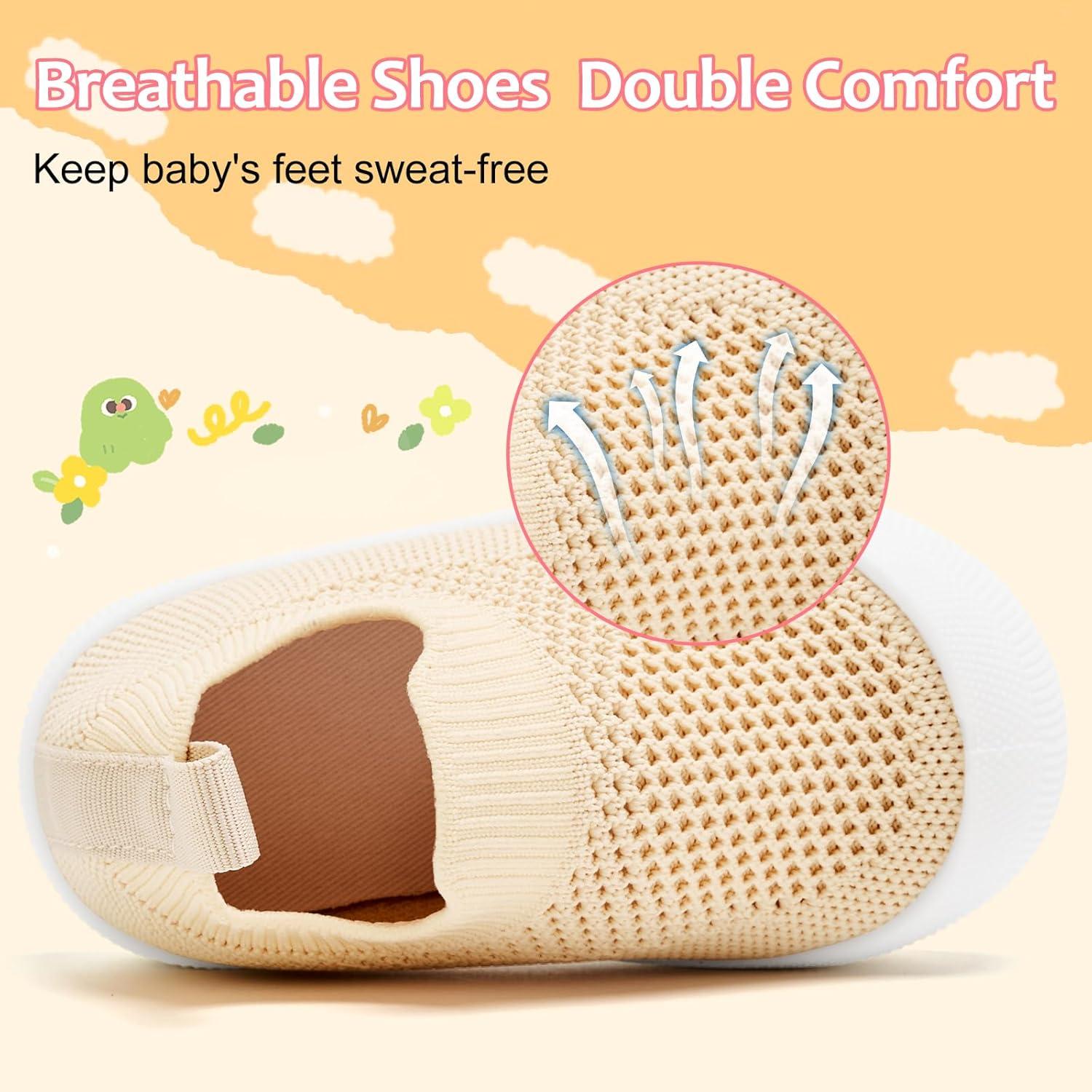 VIFUUR Baby Shoes Girls Boys Toddler Sneakers Non-Slip First Walkers Shoes for Babies 6 9 12 18 24 Months(L Apricot)
