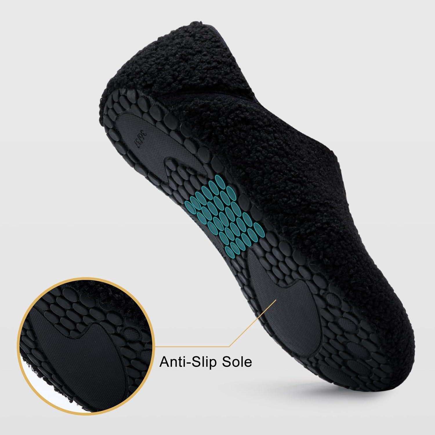 VIFUUR House Slippers for Women Men Slip on Indoor Barefoot Slipper Socks Fuzzy Cozy Sock Shoes for Home Bedroom Travel(02 Black)