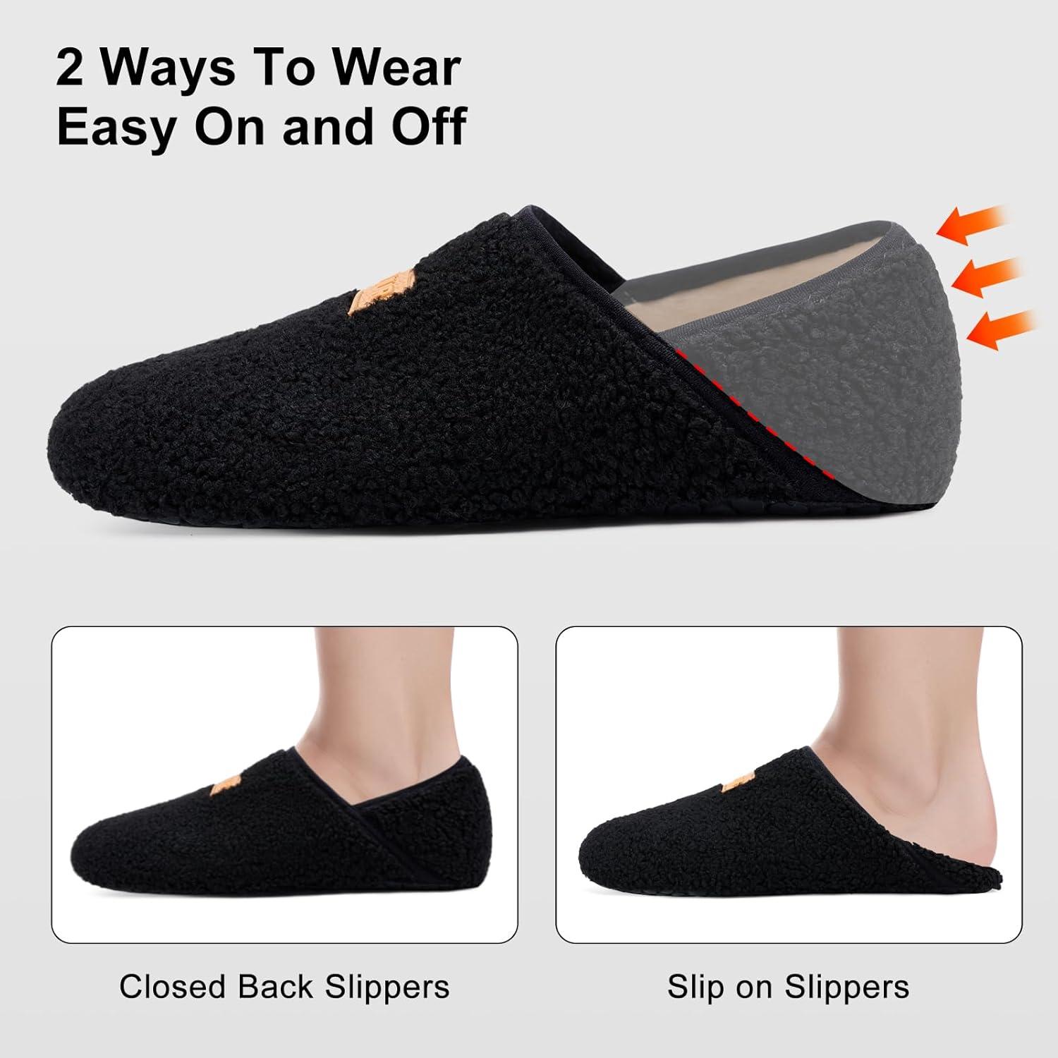VIFUUR Men’s Women’s Slippers Memory Foam Slippers Short Plush Lining Non-Slip Sole Slippers Indoor Outdoor