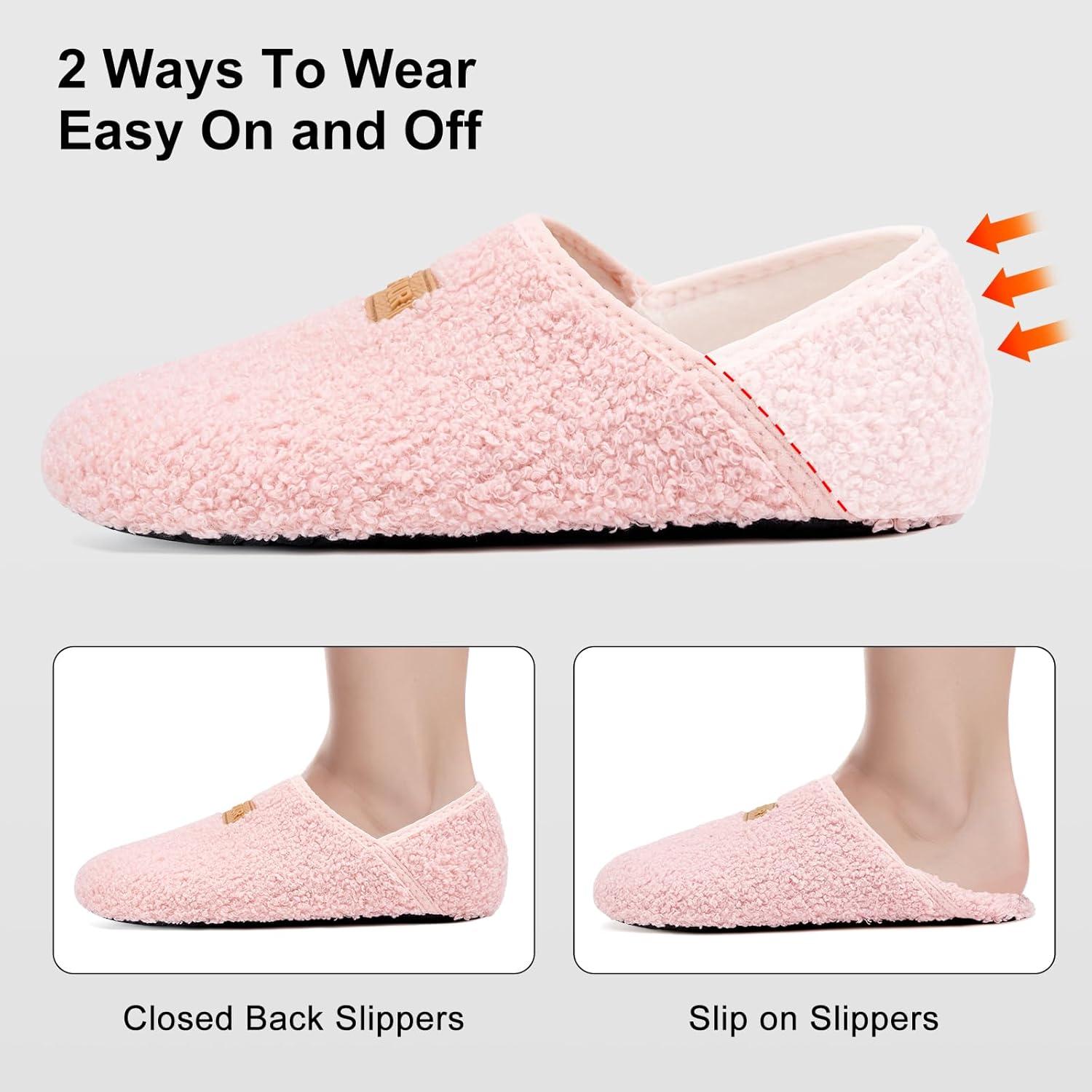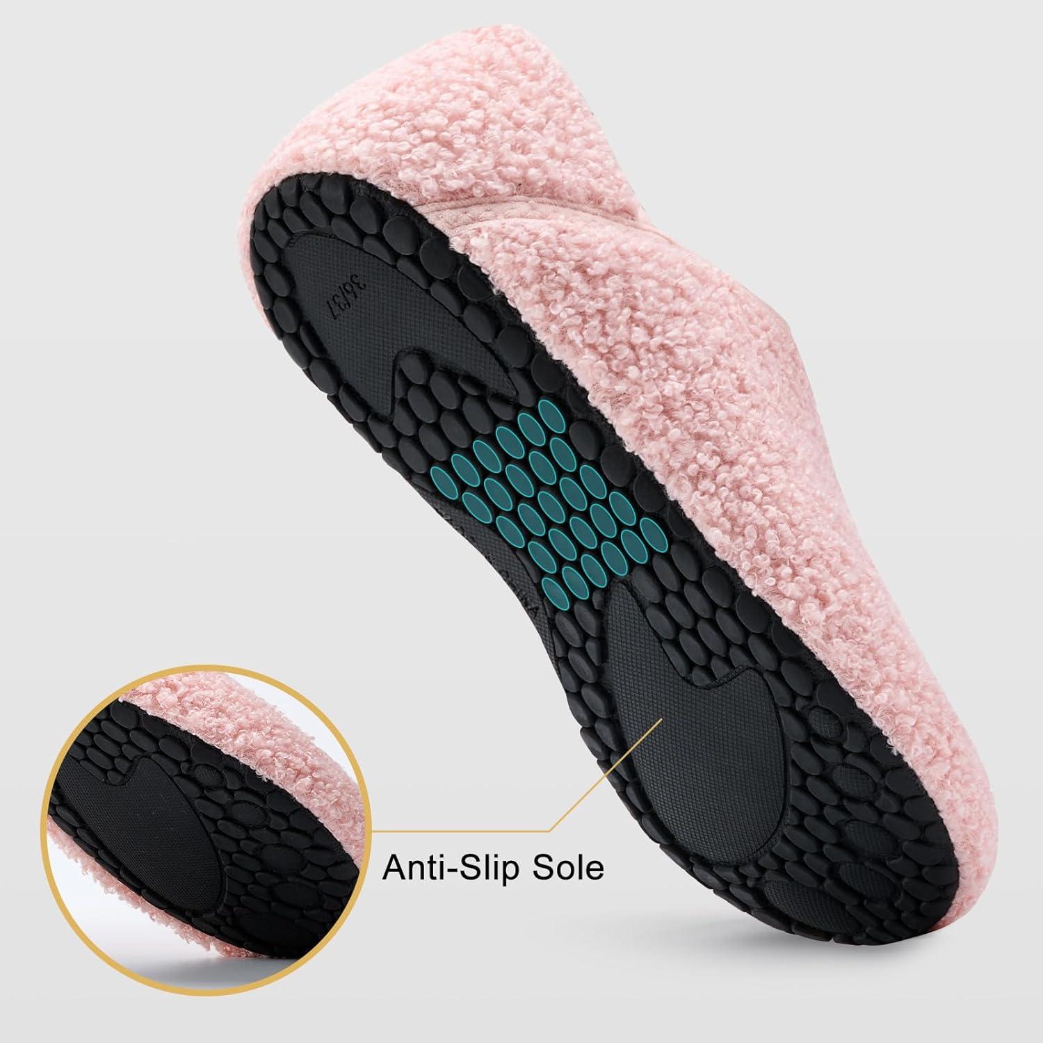 VIFUUR House Slippers for Women Men Slip on Indoor Barefoot Slipper Socks Fuzzy Cozy Sock Shoes for Home Bedroom Travel(05 Pink)