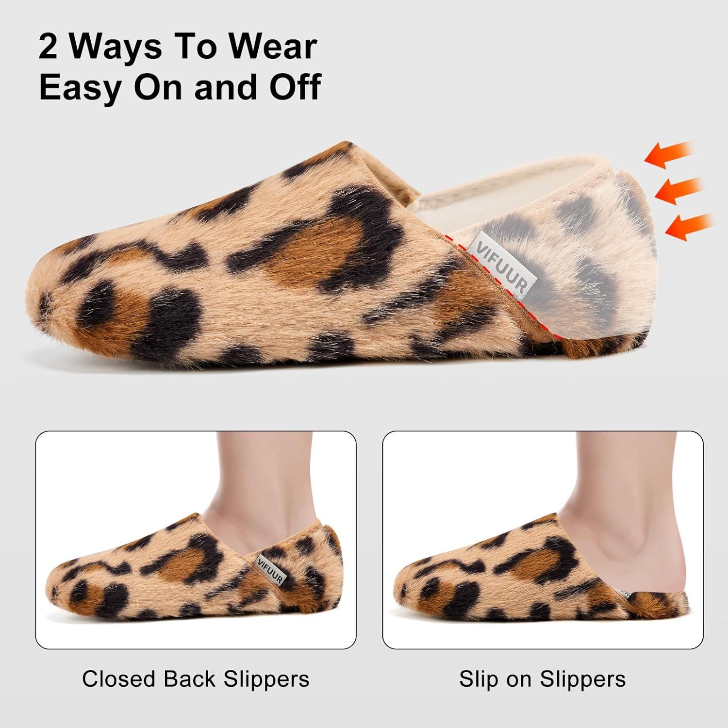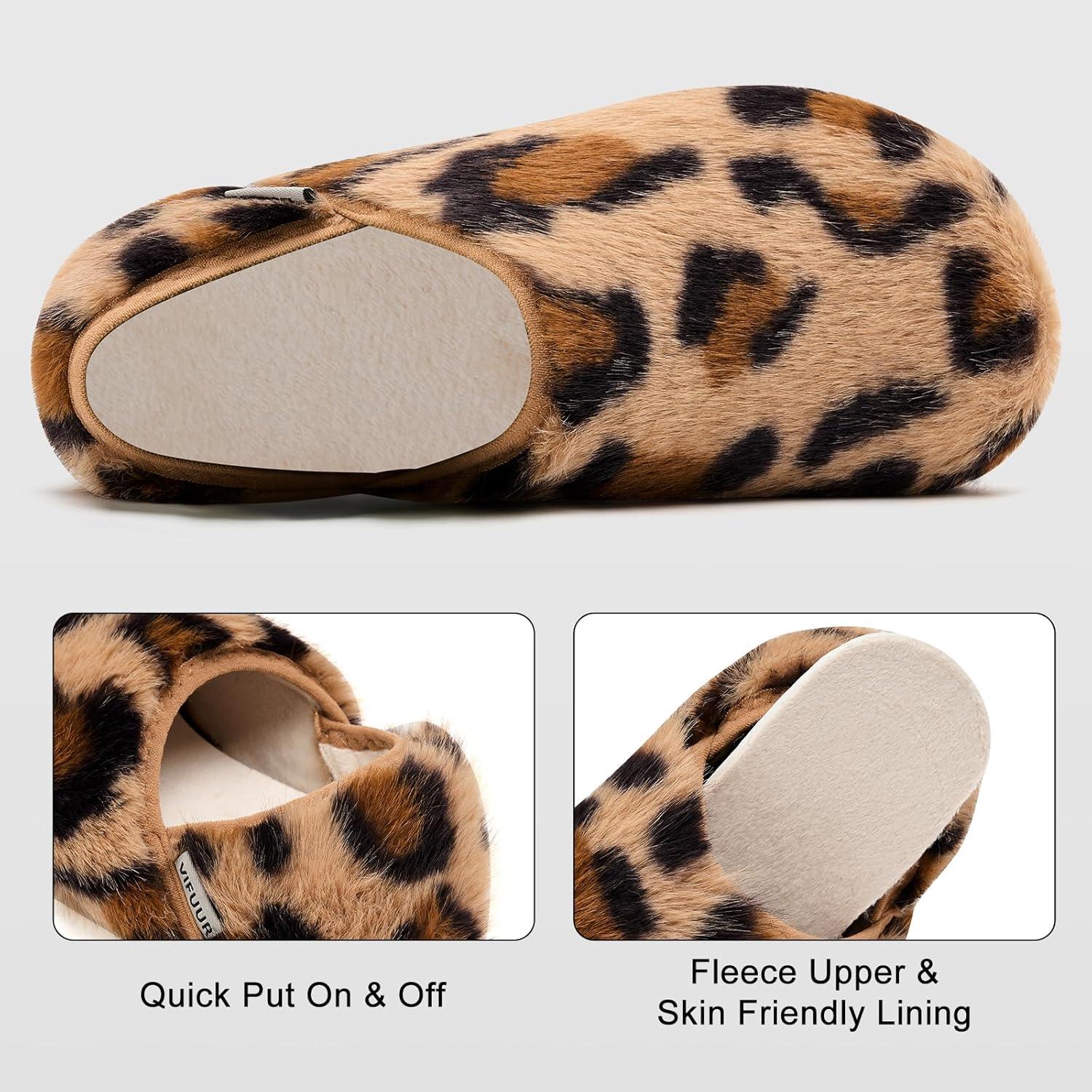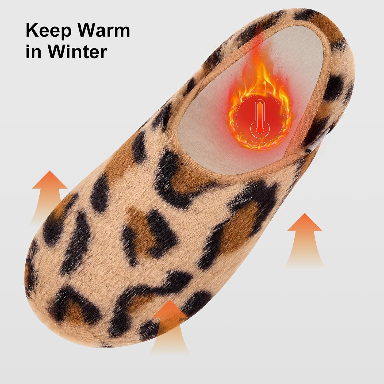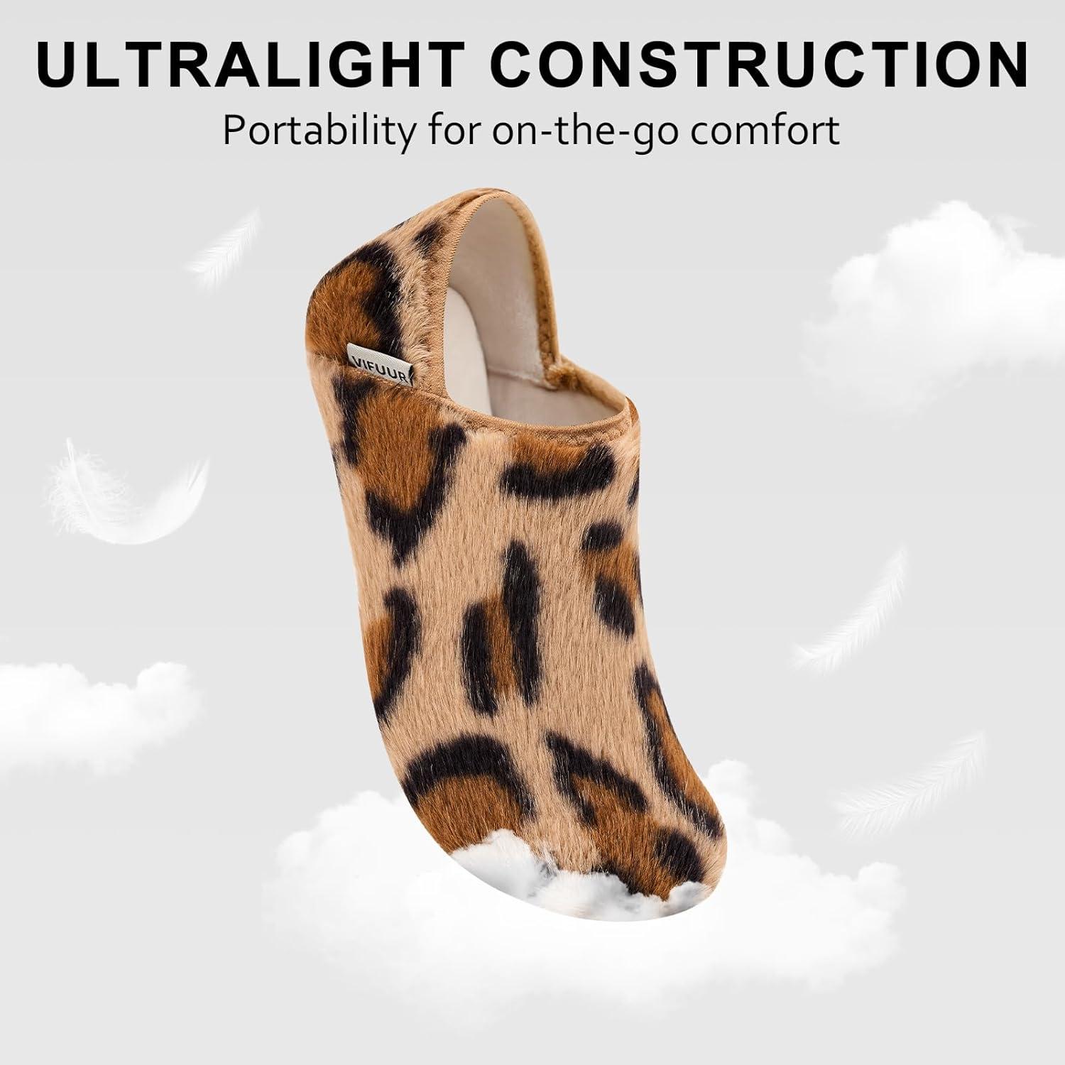 VIFUUR House Slippers for Women Men Slip on Indoor Barefoot Slipper Socks Fuzzy Cozy Sock Shoes for Home Bedroom Travel(Brown Leopard)