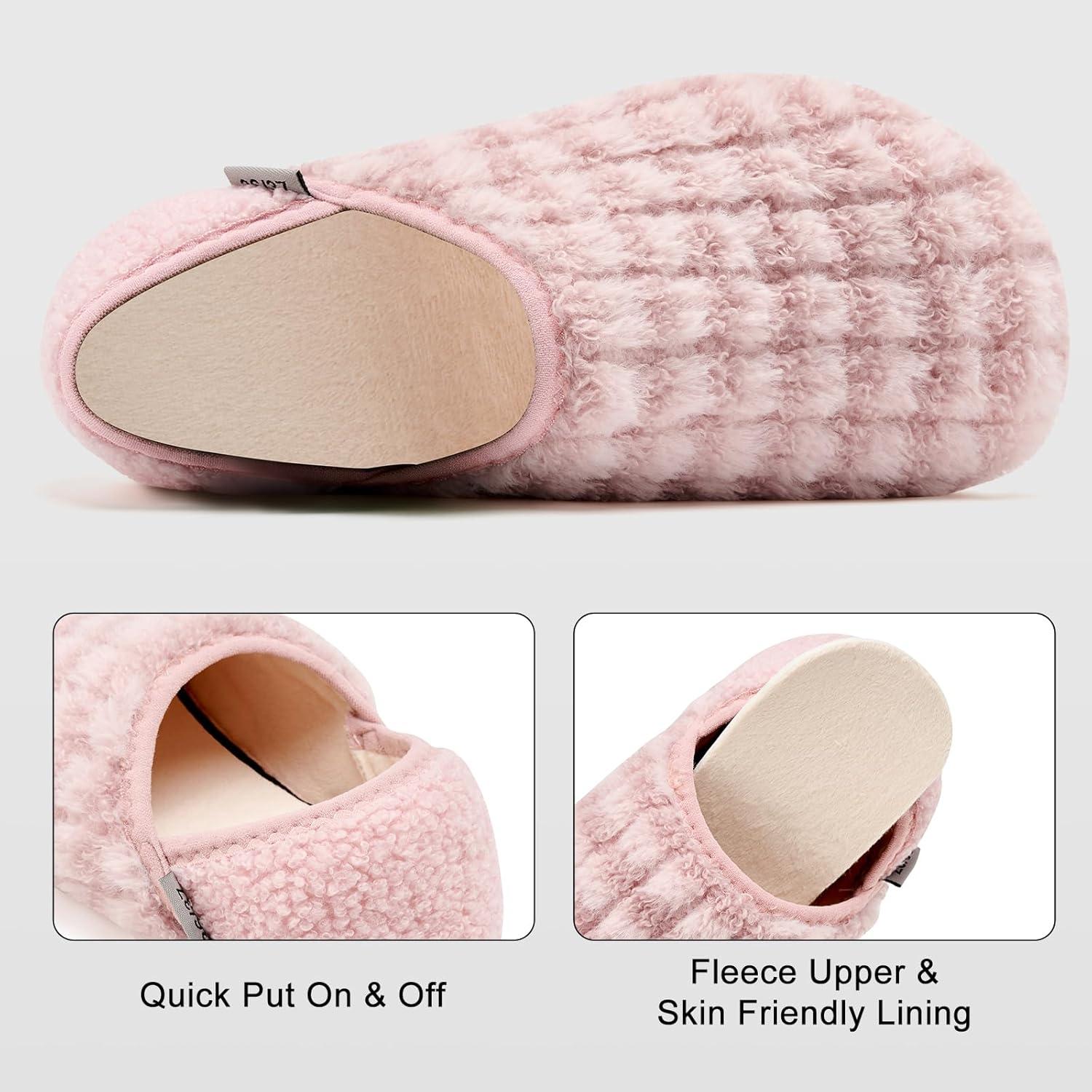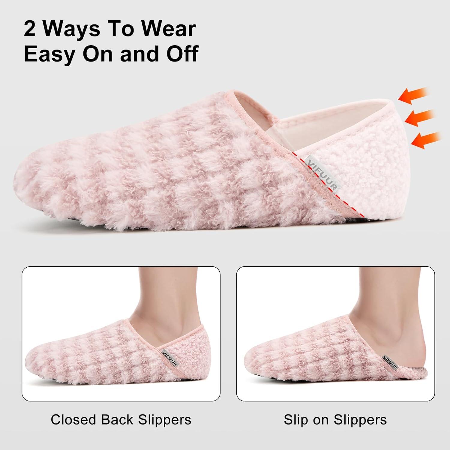 VIFUUR House Slippers for Women Men Slip on Indoor Barefoot Slipper Socks Fuzzy Cozy Sock Shoes for Home Bedroom Travel(Pink Striped)